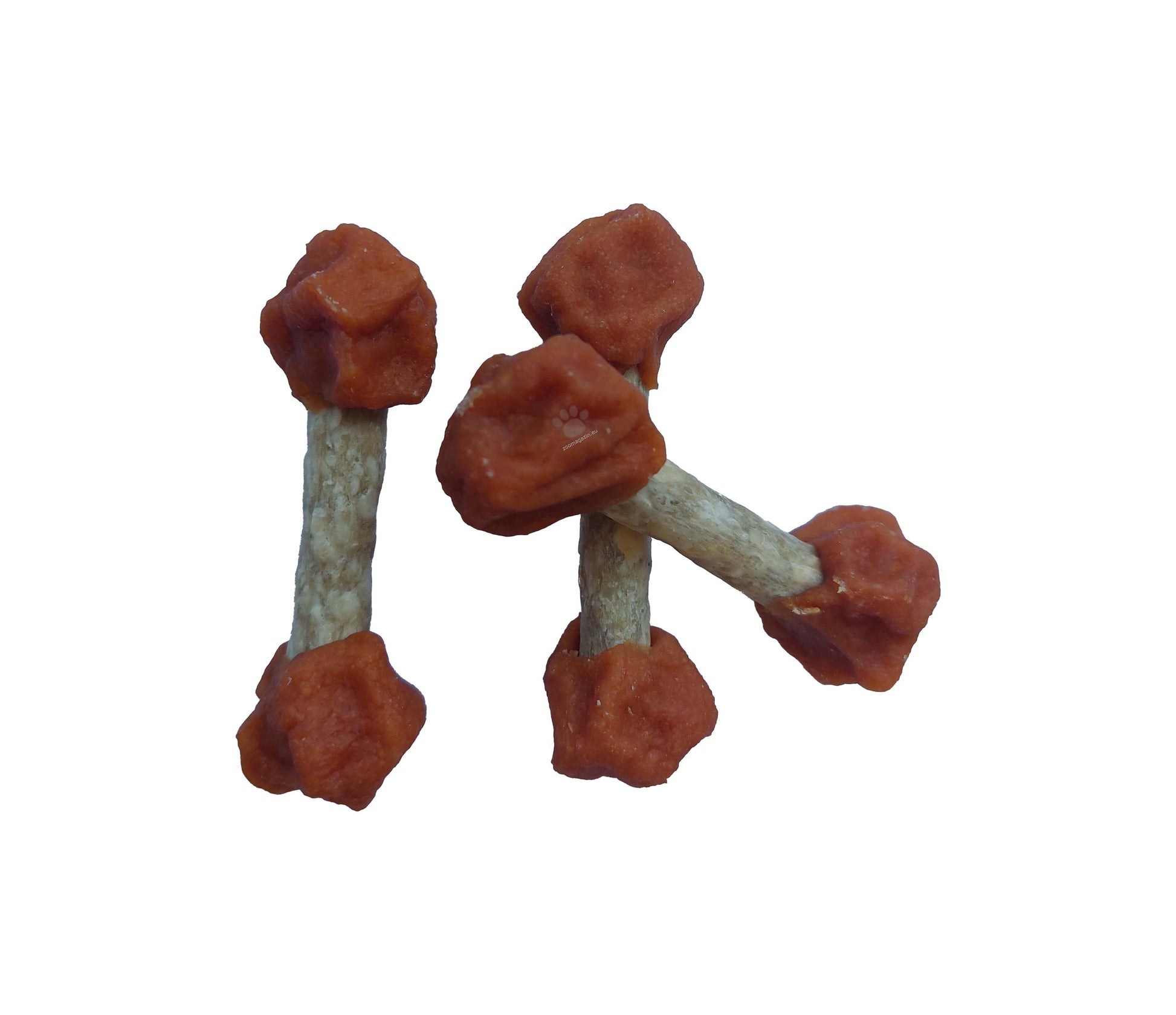 Състав: пилешко месо 50%, пшенично брашно 40%, грахов протеин на прах 8%, глицерин 2%.