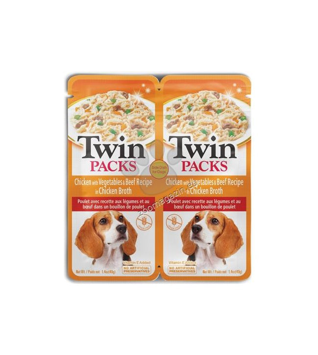 - Двойните опаковки, са две еднократни порции накъсано пилешко месо и зеленчуци, потопени във вкусно желе. Отделете едно от друго, махнете горната част и ползвайте като овкусител за сухата или мократа храна на животното или като допълваща храна.