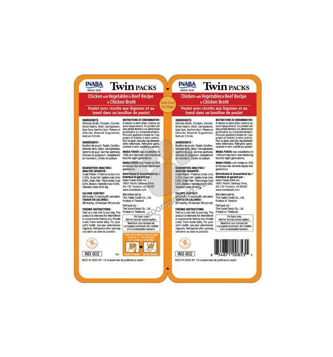 РАЗПРОДАЖБА Inaba Chicken with Vegetables and Beef Recipe in Chicken Broth – пауч с пилешко и говеждо 2 x 40 гр