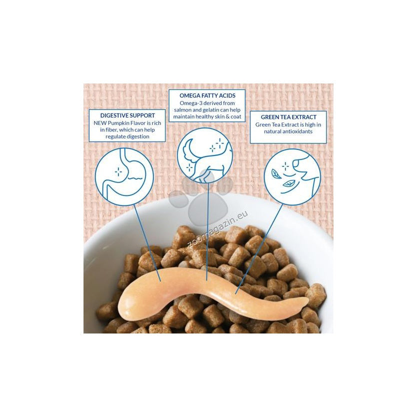 Напълно балансирана. Държи животните хидратирани, без добавени калории. Всяка опаковка съдържа 85% влага и само 11 калории. Перфектното лакомство за вашата разходка в парка.