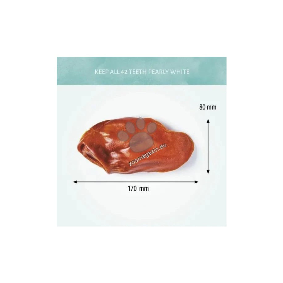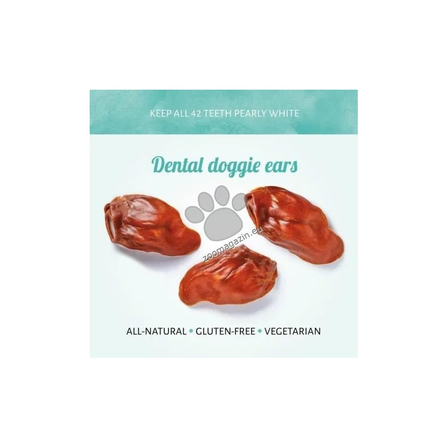 Лакомство за кучета направено от напълно естествени съставки. Със зеленчуци и без глутен. Текстурата на ухото го прави страхотно за дъвчене и намаляване на натрупването на плака и зъбен камък. Подходящо за тренировка или като награда между храненията.