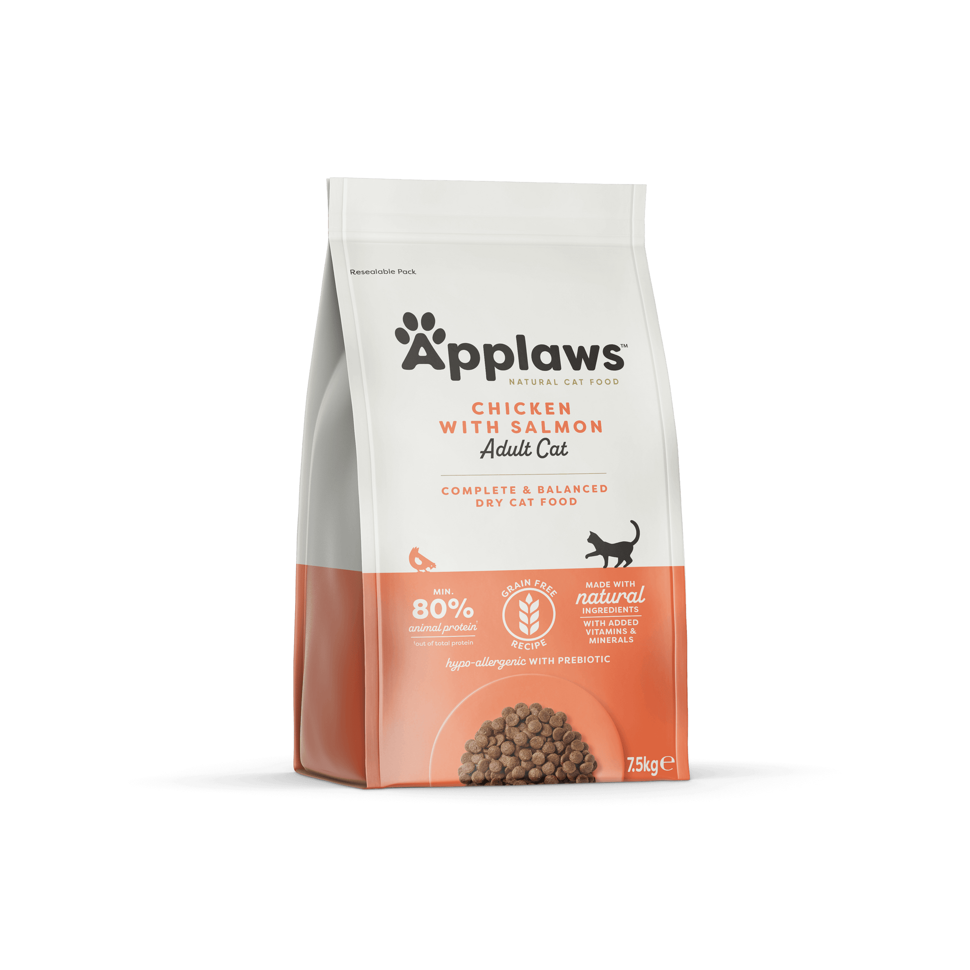 Applaws Adult Chicken with Extra Salmon - пълноценна храна с пилешко месо и сьомга, за котки над 12 месечна възраст 7.5 кг.
