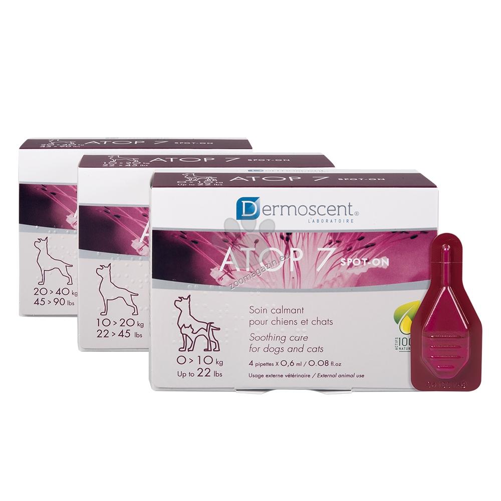 16 атопични кучета бяха третирани с ATOP 7® spot-on и ATOP 7® шампоан веднъж седмично в продължение на един месец в допълнение към медикаментозното лечение, докато 12 атопични кучета продължиха лечението си с лекарства без допълнителни грижи.