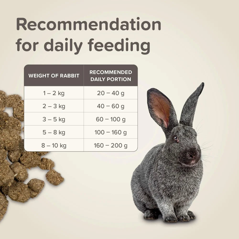 Специално формулирана за възрастни зайци с ниско съдържание на калций за предпазване от проблеми с бъбреците и пикочния мехур.