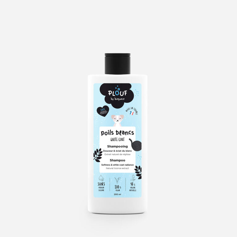 Шампоан за бяла козина, без парабени,с формула на базата на екстракт от сладко дърво, която предлага нежно почистване и ревитализира бяла козина и светло оцветена козина.
