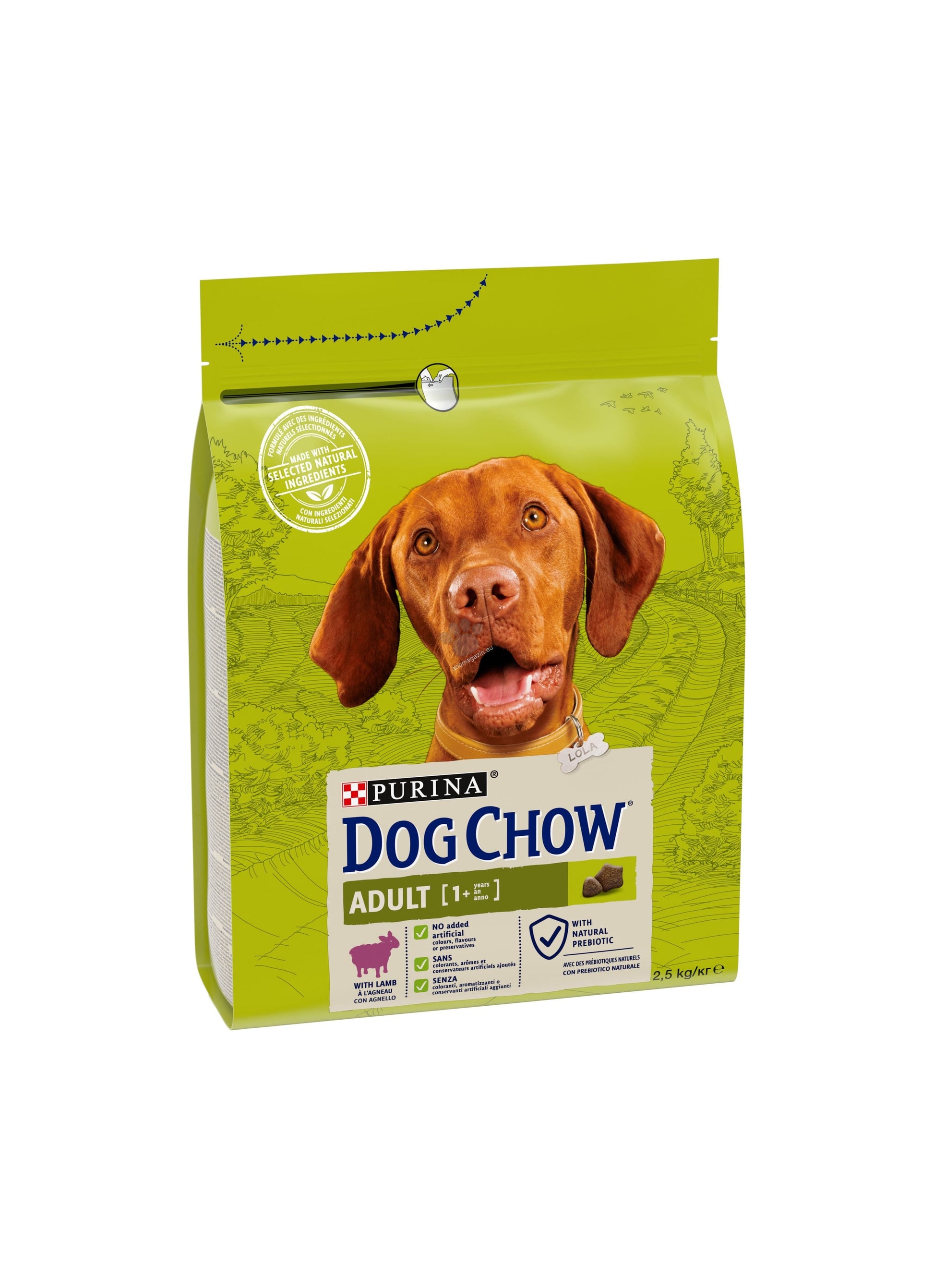 Важно е, че познавате кучето отвътре. И Лола е ЛАКОМНИК, без съмнение. Тя души всичко, тя трябва да знае къде е всичко. Изследва света чрез муцуната и носа си, като опитва всичко, което открие. Ние живеем извън града, така че има много неща за изследване. Тя е пожарникарско куче, но тъй като е голям лакомник, избягвам да ѝ давам лакомства по време на обучението-цялото ѝ внимание ще е насочено към храната! Линдзи, от Престън. Възрастни кучета 1+ година С Агне Без добавени изкуствени оцветители, ароматизанти или консерванти Направена с подбрани естествени съставки С естествен пребиотик 100% пълноценна и балансирана формула, която гарантира здравословно хранене Създадена от ветеринарите и експертите по хранене на Purina. Експерти в храненето от 1926г..