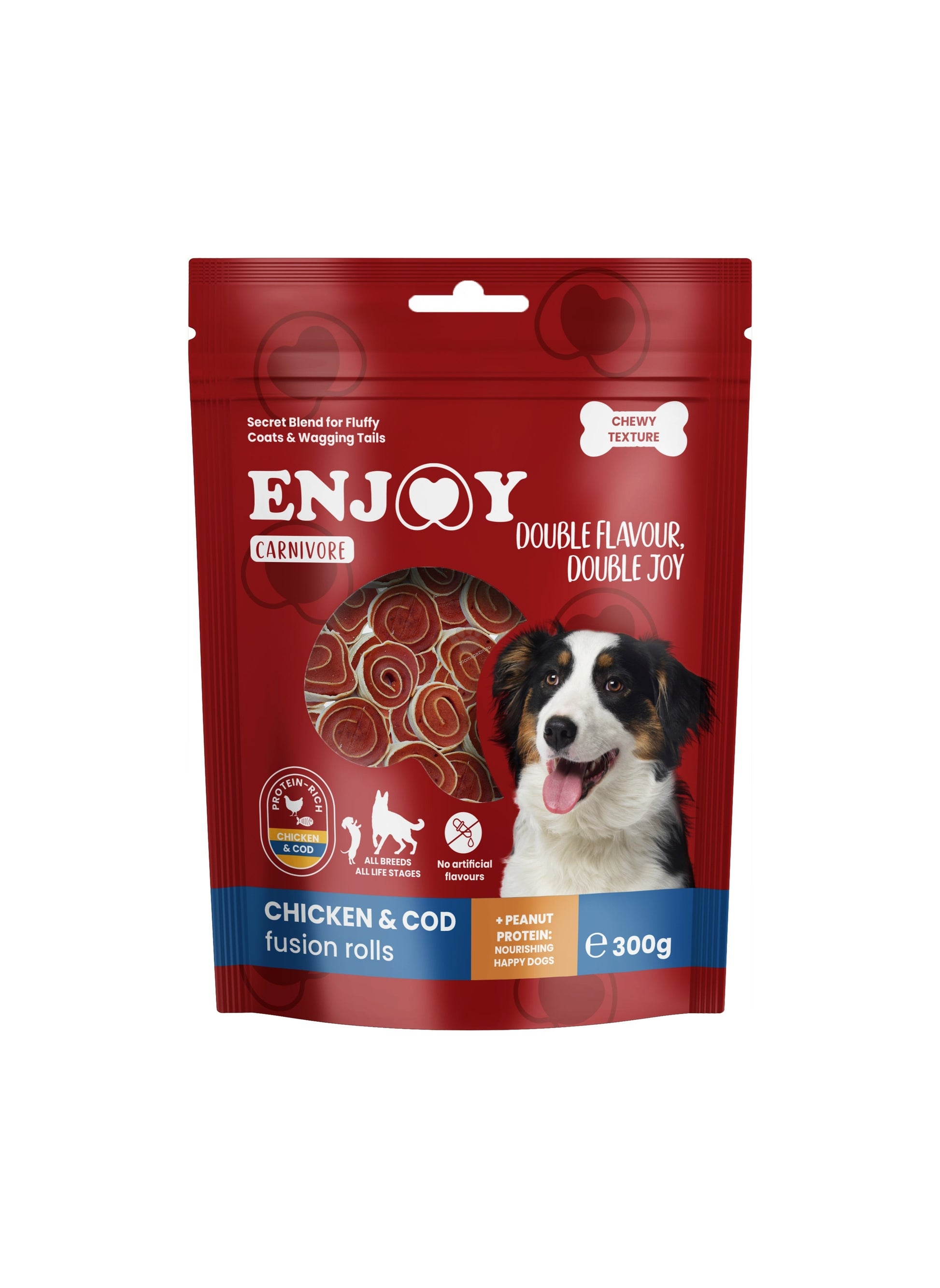 Enjoy Carnivore Chicken and Cod Fusion Rolls - лакомство за куче с пилешко месо и треска 300 гр