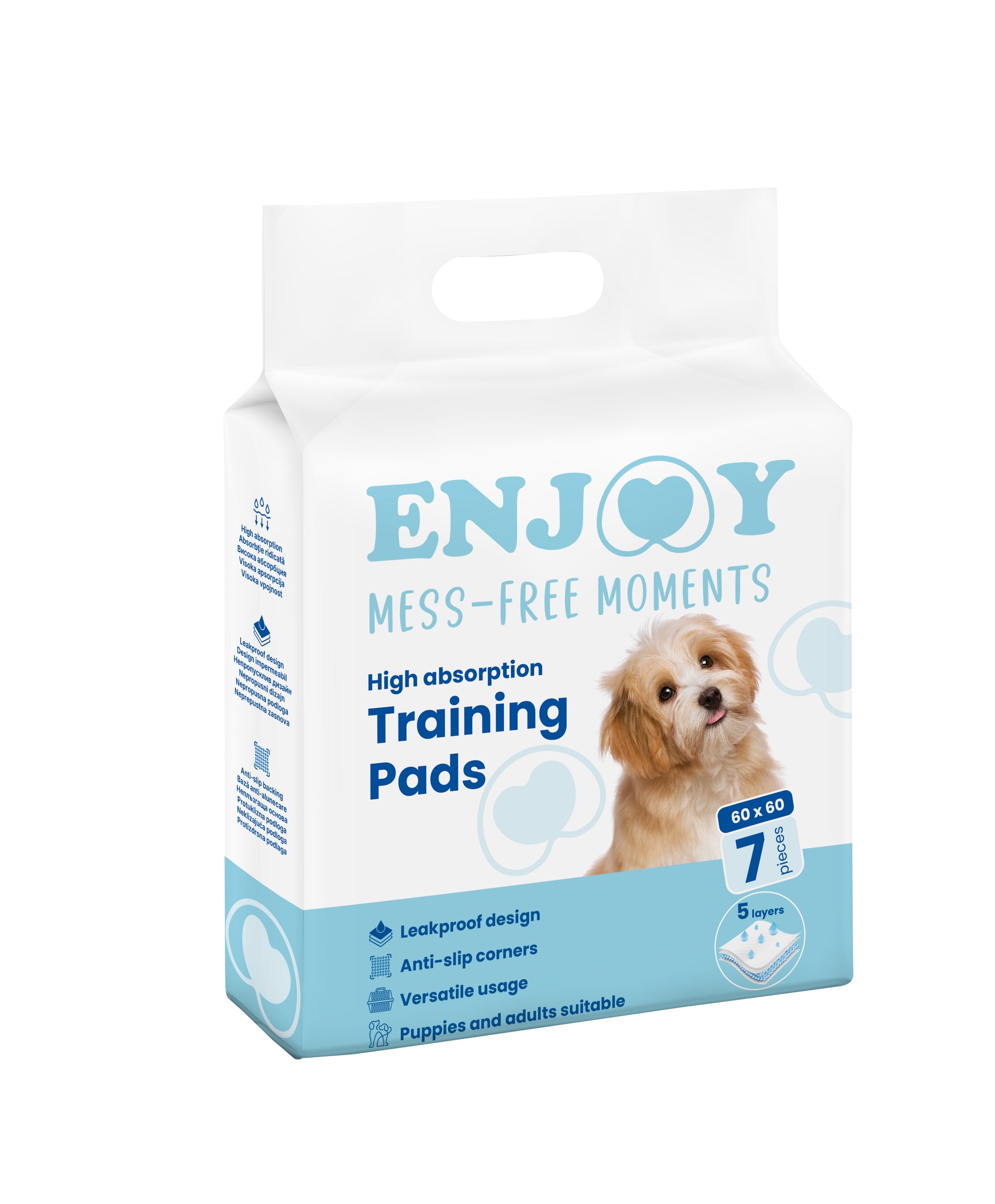 Enjoy Pet Pads са практично и хигиенично решение за обучение на вашето кученце или за ежедневна грижа за вашето куче. Тези подложки са идеални за кучета, които прекарват значително време на закрито или за използване по време на транспортиране - независимо дали с кола, в колички за домашни любимци или клетки.