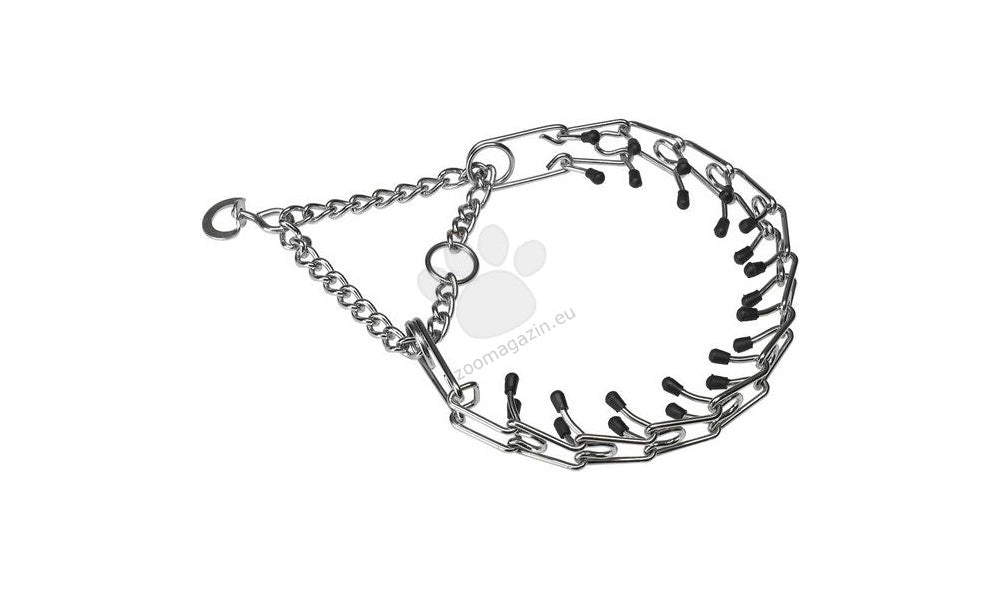 Mетален хромиран строг нашийник с възможност за намаляване чрез премахване на някой от сегментите. Подходящ за обучение.