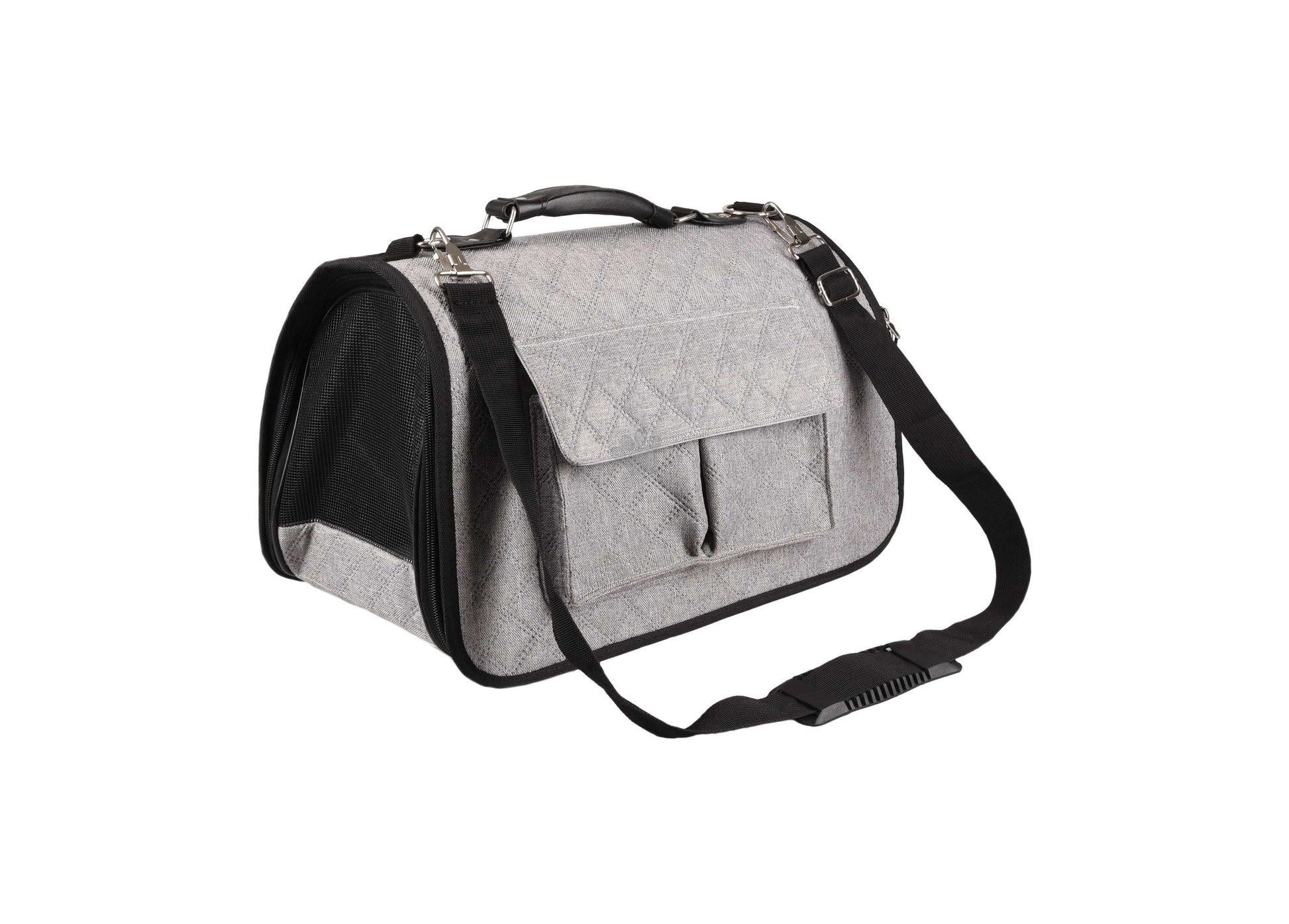 Вземете своя верен четириног приятел със себе си безопасно и удобно с тази удобна чанта за носене! Разполага с дръжка и регулируема презрамка, както и удобни странични джобове за аксесоари и лични вещи. Перфектен, когато сте в движение!