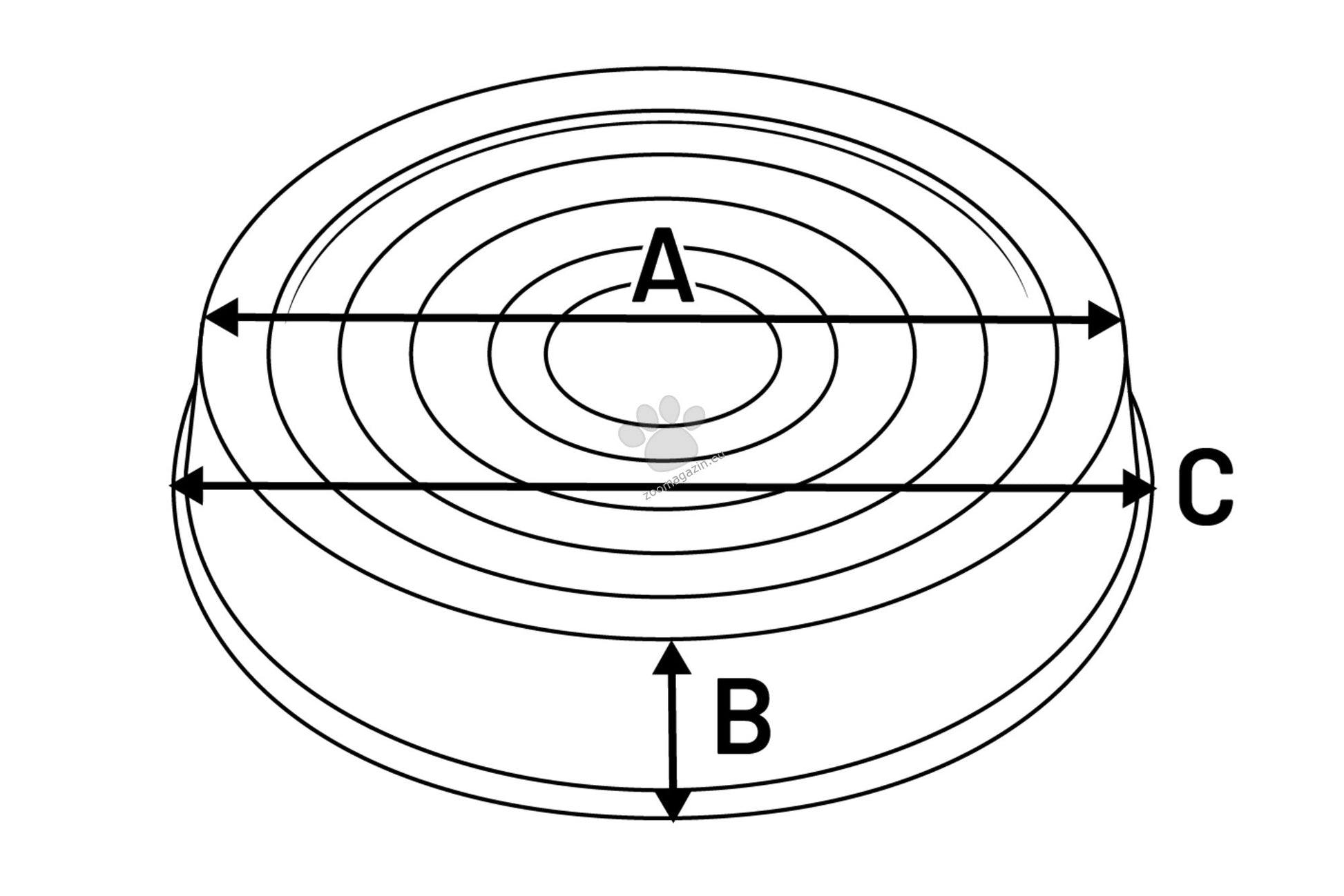 Размери: A: 12,5 см B: 3 см C: 12,5 см
