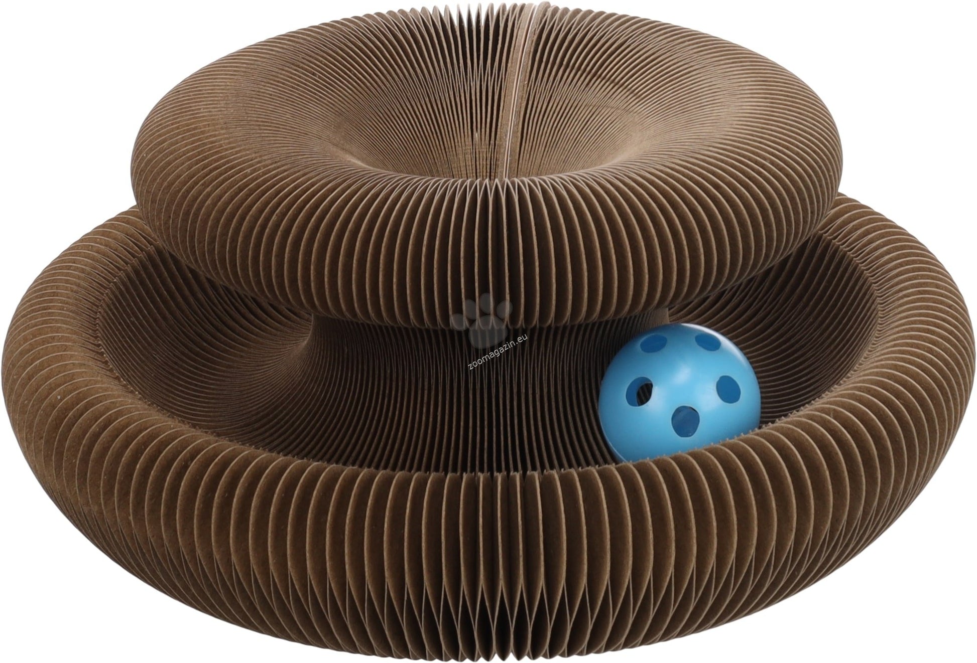 Оставете котката си да драска и да си играе с тази забавна драскалка! Тази картонена играчка може да се трансформира в 3 форми и има звънтяща топка за допълнително забавление. Лесна за съхранение и рециклируема. Вашата котка ще я хареса!