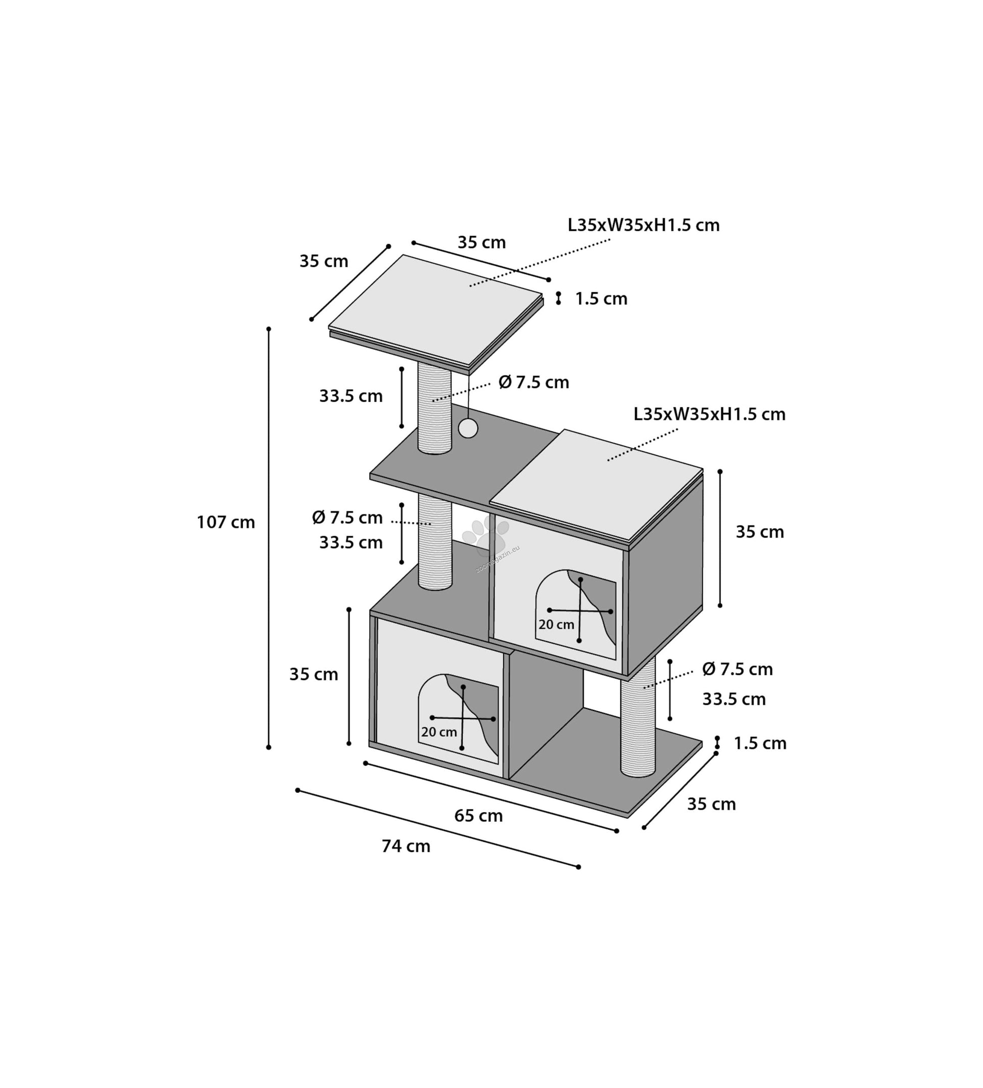 Драскалката Dana Cat е просто перфектна за вашия котешки приятел! Изработена от здраво ПДЧ и включва памучно въже за драскане, това е най-добрата драскалка за котенца. В комплект с платформи за отдих, уютни скривалища и подвижни възглавници, тази драскалка е олицетворение на комфорта. Възглавниците са покрити с плюшена материя и са закрепени с велкро. Стои на гумени крачета за стабилност и дори идва с бонус играчка за безкрайно забавление!