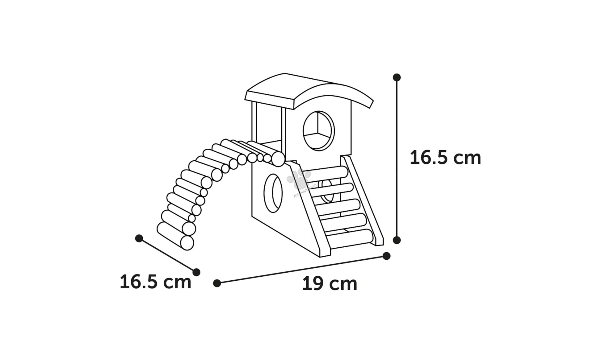 Осигурете на вашия хамстер или друг малък гризач безопасен и забавен дом с тази кула и мост. Изработен от безопасни материали и идеален за часове на игра, той също така добавя игрив вид към тяхното местообитание. Подходящ за хамстери, джербили и мишки. Къщата е с под и без дъно.
