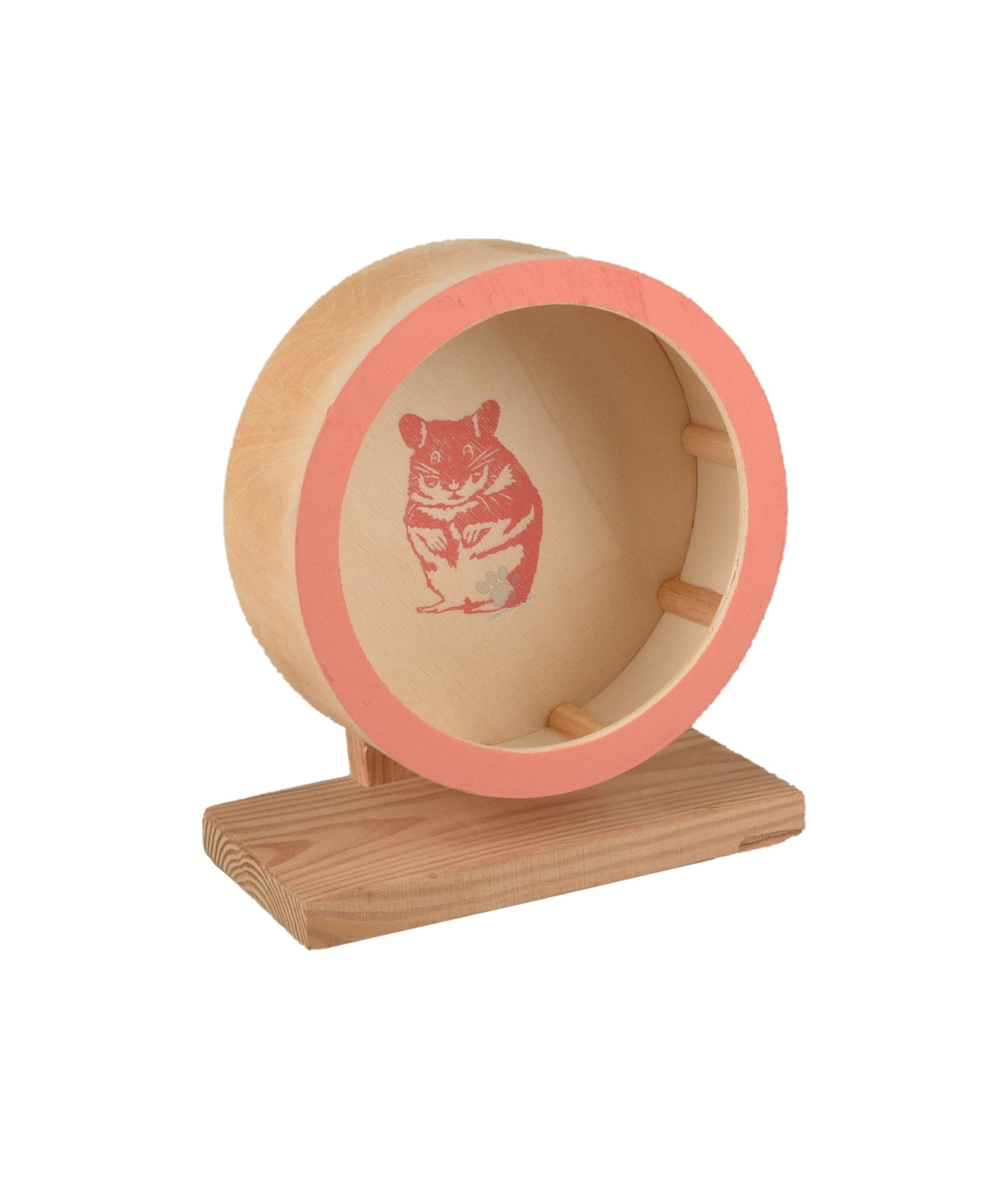 Нека вашият малък гризач остане активен с нашето дървено колело за упражнения! Хамстерите джуджета, мишките и дегу имат естествено желание да се движат и нашето колело им осигурява идеалния вариант. Благодарение на сачмения лагер е безшумен, а затворената повърхност за бягане облекчава гръбнака и ставите. Стабилната платформа гарантира, че колелото няма да се преобърне и се побира навсякъде в клетката. С диаметър от 14,5 см, той е идеален за по-малки гризачи.