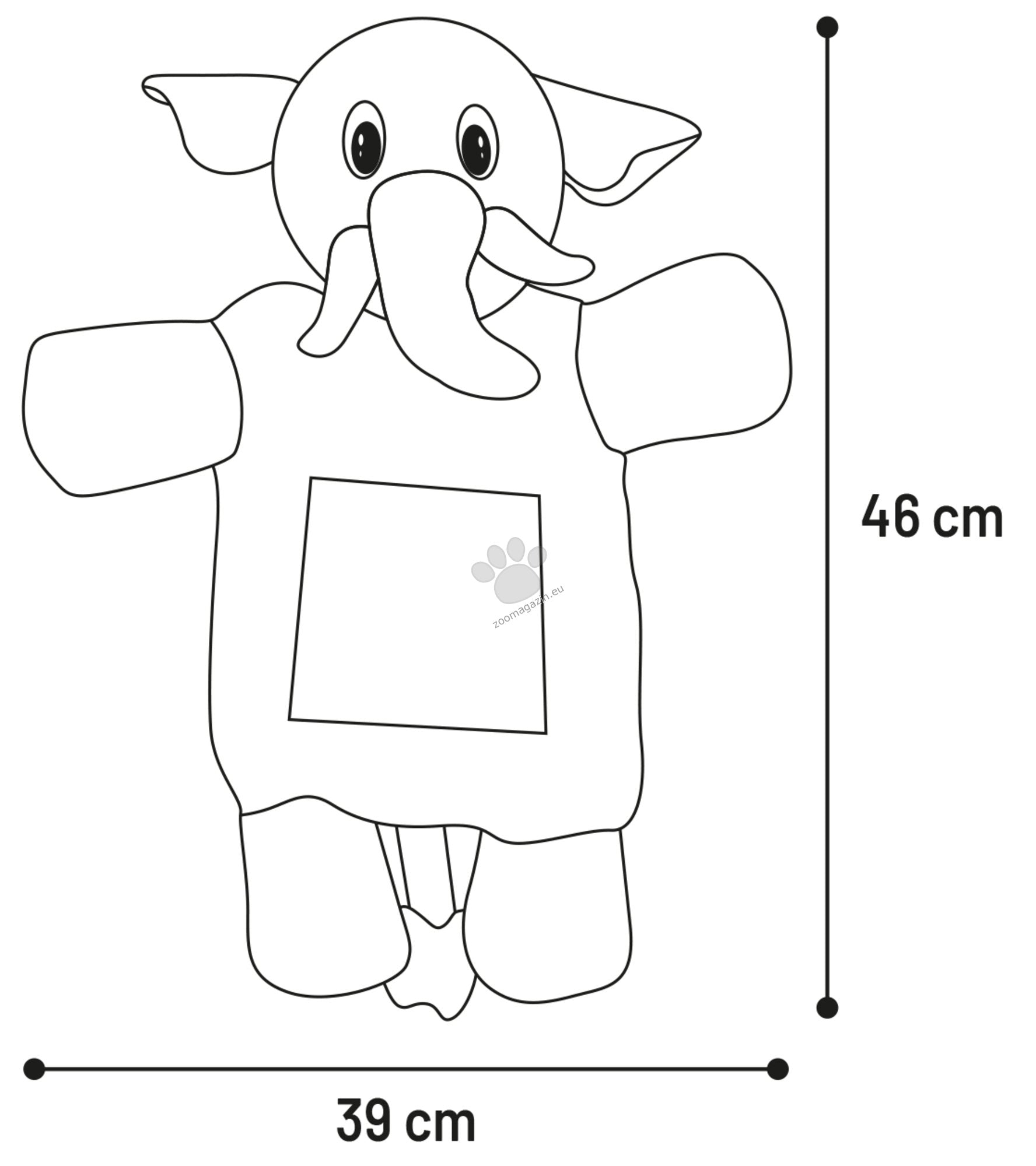 Нека вашият пухкав приятел се забавлява страхотно с това очарователно сиво слонче! Изработено от мек плюш и покрито с кадифе. Сложете лакомства в коремчето му. Гарантирано приятно прекарване!