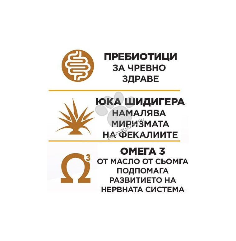 - Със сьомгово масло за лъскава козина и подпомагане на нормалното развитие по време на растеж