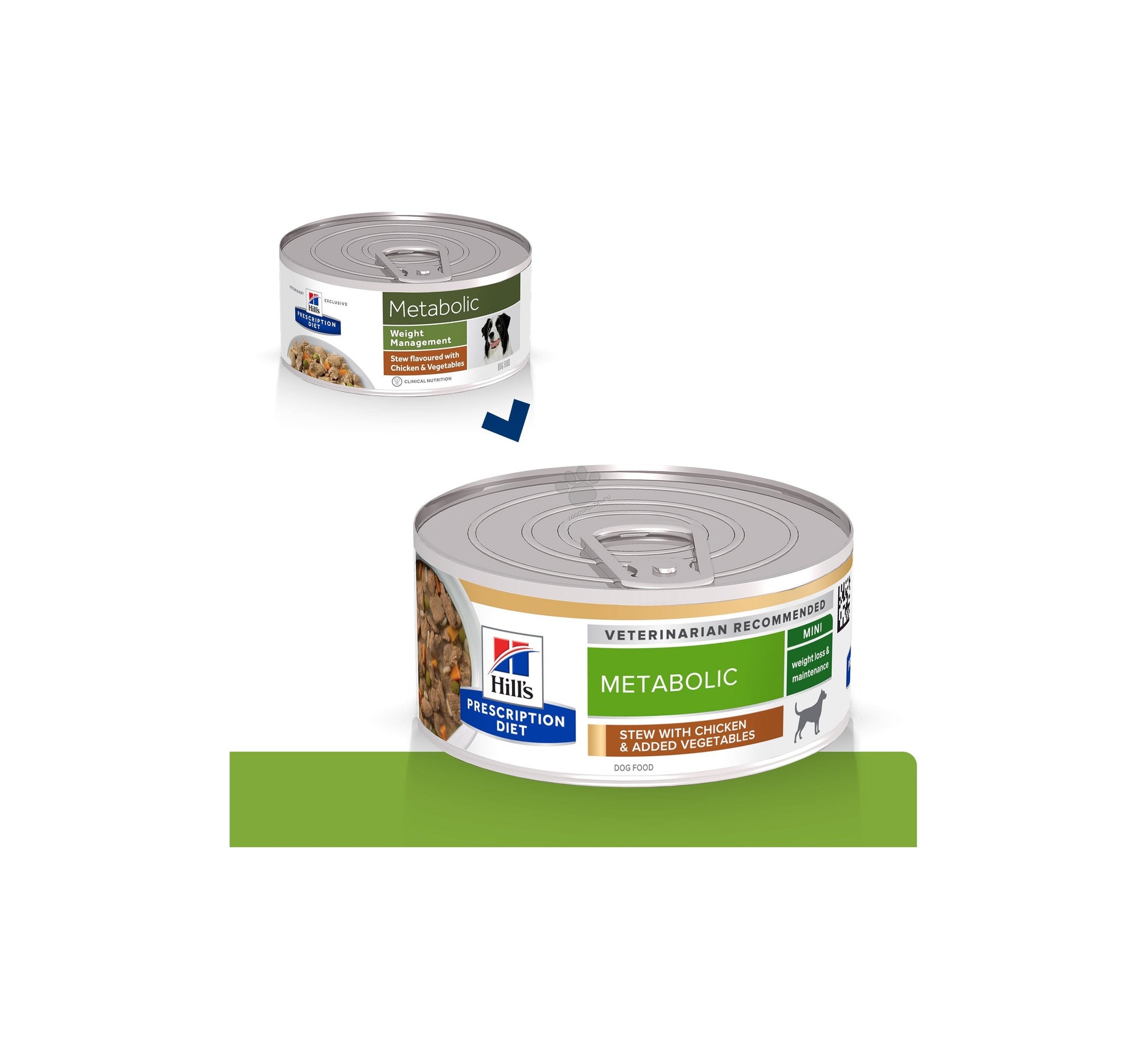 Hill`s PRESCRIPTION DIET Metabolic Mini е клинично доказана пълноценна диета за отслабване и поддържане на теглото на кучета от дребни породи в зряла възраст. Действа съобразно индивидуалния разход на енергия на кучето за лесно и ефективно отслабване. Тази храна стимулира естествената способност на кучетата да изгарят излишните мазнини и осигурява енергия за активна игра. Нейният уникален микс от фибри помага на кучетата да се чувстват сити и доволни. В проучване на Hill’s Pet Nutrition, Inc. 96% от домашните любимци, хранени у дома с PRESCRIPTION DIET Metabolic Mini, са отслабнали в рамките на 2 месеца. Тази мокра храна се приготвя с пилешко и зеленчуци и има неустоим вкус, който кучето ви ще обикне.