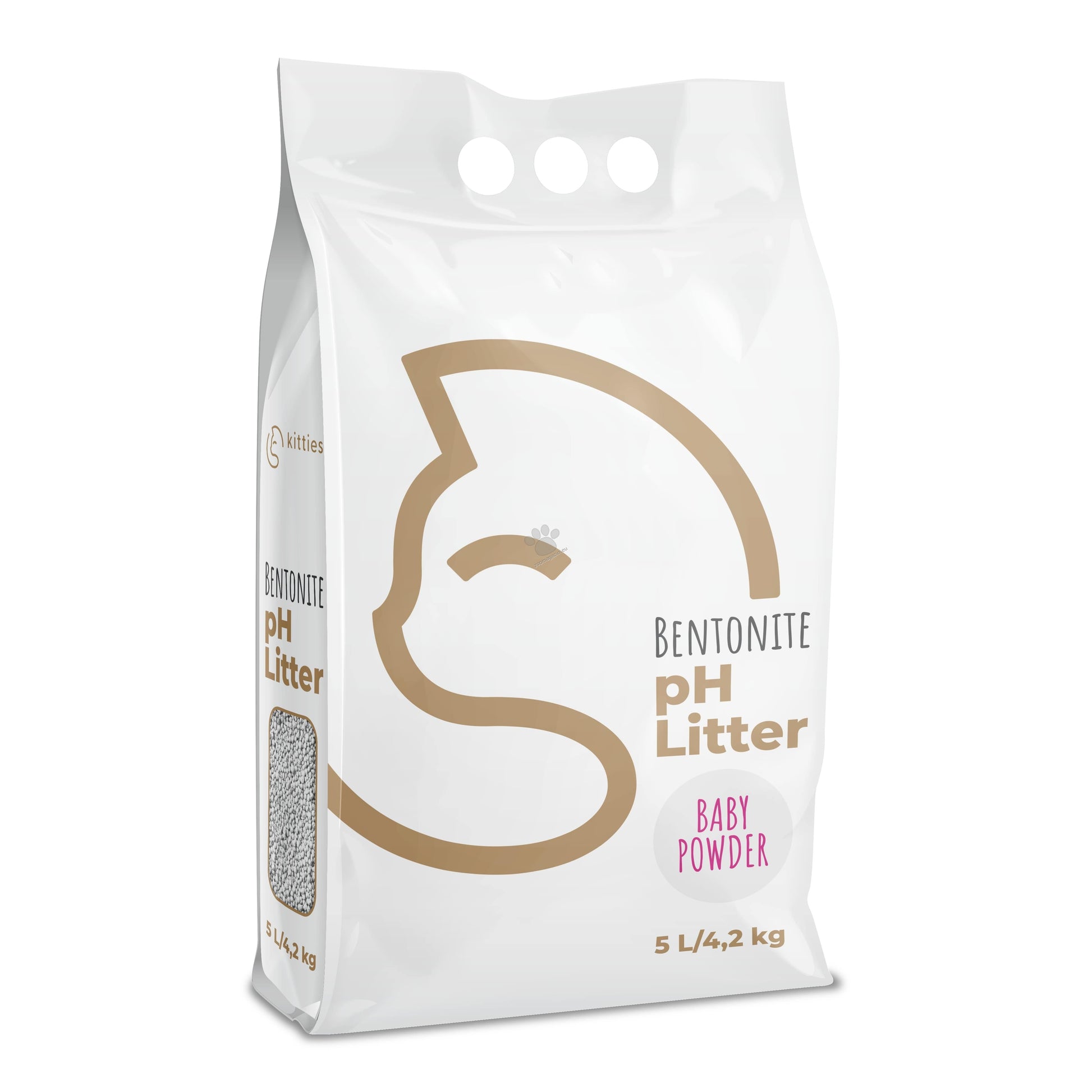 Kitties Baby Powder - бентонитова котешка тоалетна / аромат бебешка пудра / 5 литра