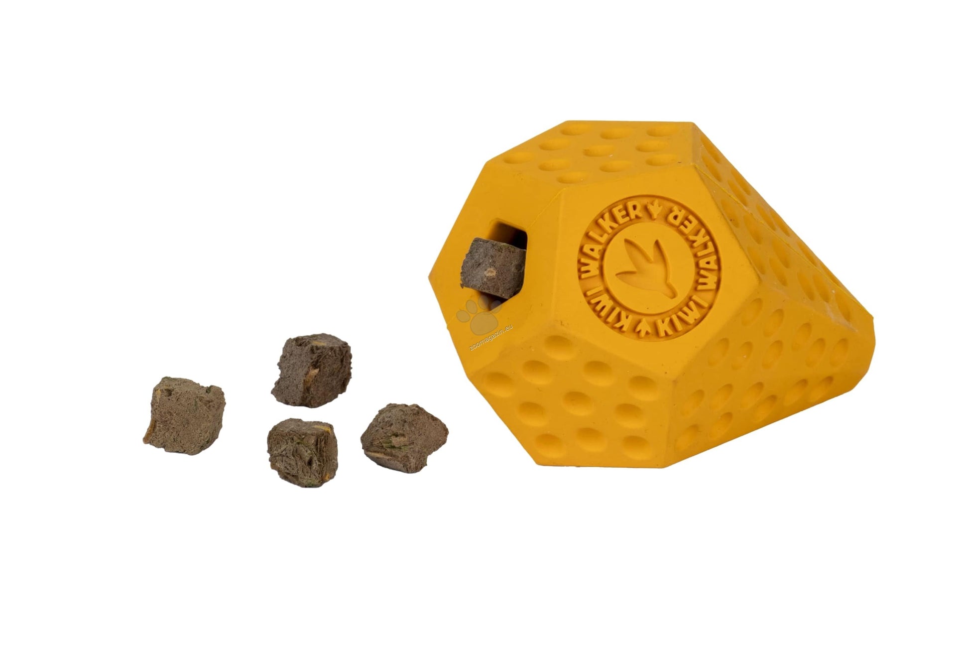 Много издръжлива гумена играчка с отвори за поставяне на лакомства. Оригиналната му геометрична форма ще осигури дълготрайно забавление на вашия четириног приятел. Играчката подскача неочаквано и ще поддържа вашето куче психически стимулирано и фокусирано върху раздаването на лакомството. Предлага се в четири забавни цвята и форми. Diaballl е вдъхновен от диамантената геометрична форма.