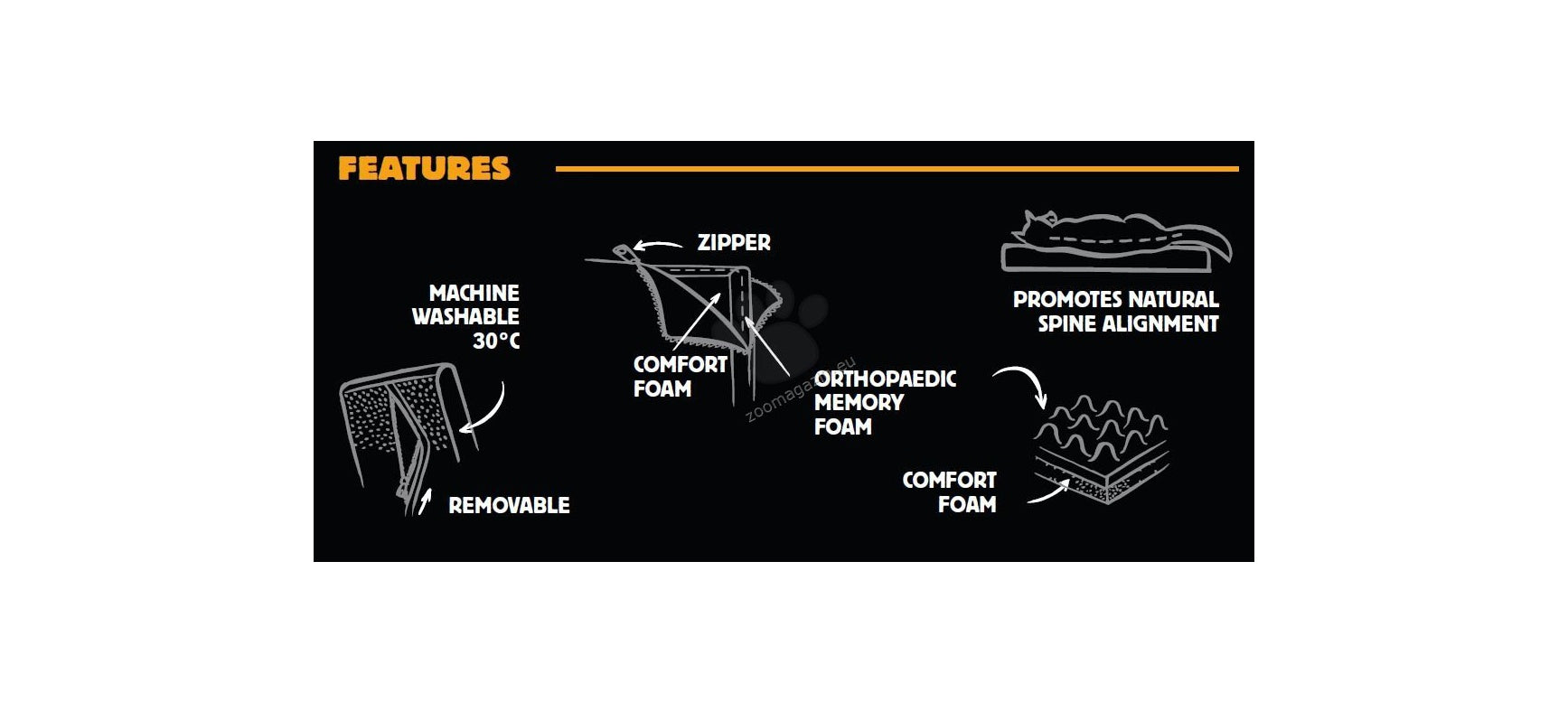 Във всички наши легла и матраци използваме ортопедична мемори пяна. Това е същата пяна, използвана във висококачествените легла и възглавници за хора. Ортопедичната мемори пяна е формовъчен материал, който реагира на теглото и има хипоалергенни свойства. Това означава, че ще се оформи по формата на тялото на вашия домашен любимец и ще облекчи натиска върху ставите му. Тя насърчава естественото подравняване на гръбначния стълб. Всички наши матраци използват Kiwi Memory Foam Sandwi – той съчетава ортопедична пяна със слой от твърда, дишаща пяна. Тази комбинация от материали означава, че можете да осигурите максимален комфорт и опора на вашия домашен любимец, дори когато леглото му е директно върху твърд под.