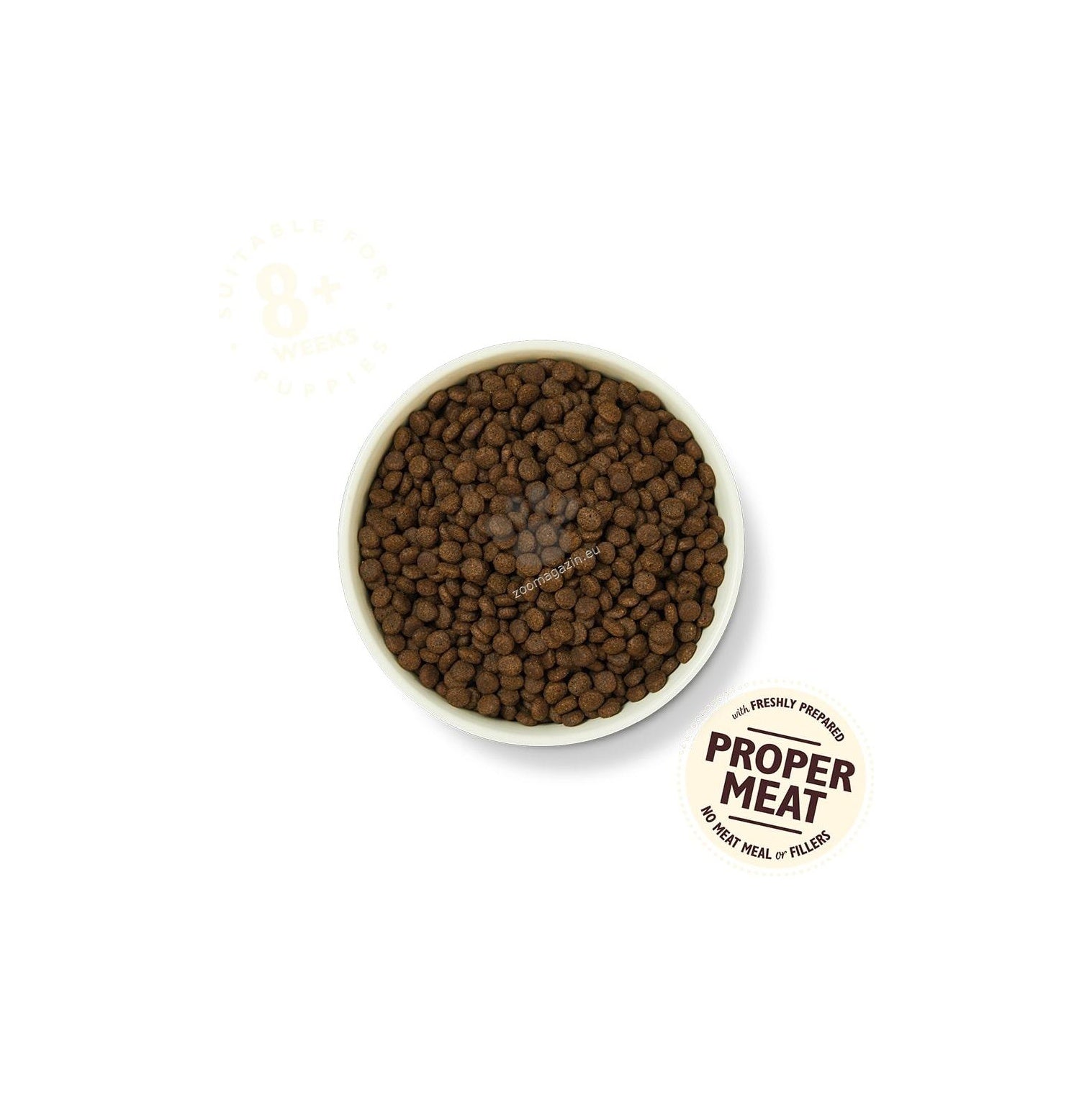 Създадохме нашата уникална пълноценна рецепта за кученца, без зърнени култури, защото вярваме, че те заслужават най-здравословния старт в живота. Добавихме уникална комбинация от здравословни съставки като сьомгово масло за здрава кожа и козина, глюкозамин и хондроитин, за да подпомогнем здравия растеж на ставите, пребиотици за здрава храносмилателна система, както и витамини и минерали за оптималното състояние да вашето кученце. Използваме само прясно приготвено месо хранителни органи, плодове и зеленчуци за една вкусна рецепта, щадяща стомахчетата и лесна за храносмилане. Добавили сме богата гама от билки, защото правилното хранене подпомага изграждането на здрава имунна система и дава на кученцето ви най-добрия шанс за дълъг живот, без болести и здравословни проблеми.
