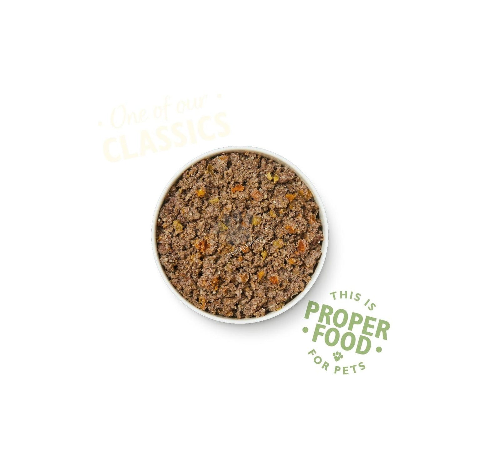 Вкусно, задоволително ястие, приготвено с прясно агнешко, картофи и много зеленчуци и плодове, включително тиква, броколи и боровинки. Тази много обичана, пълоценна рецепта е пълна с естествени съставки с добавени витамини и минерали и включва нашата уникална смес от билки, за да осигури най-добрите ползи за здравето на вашето куче.