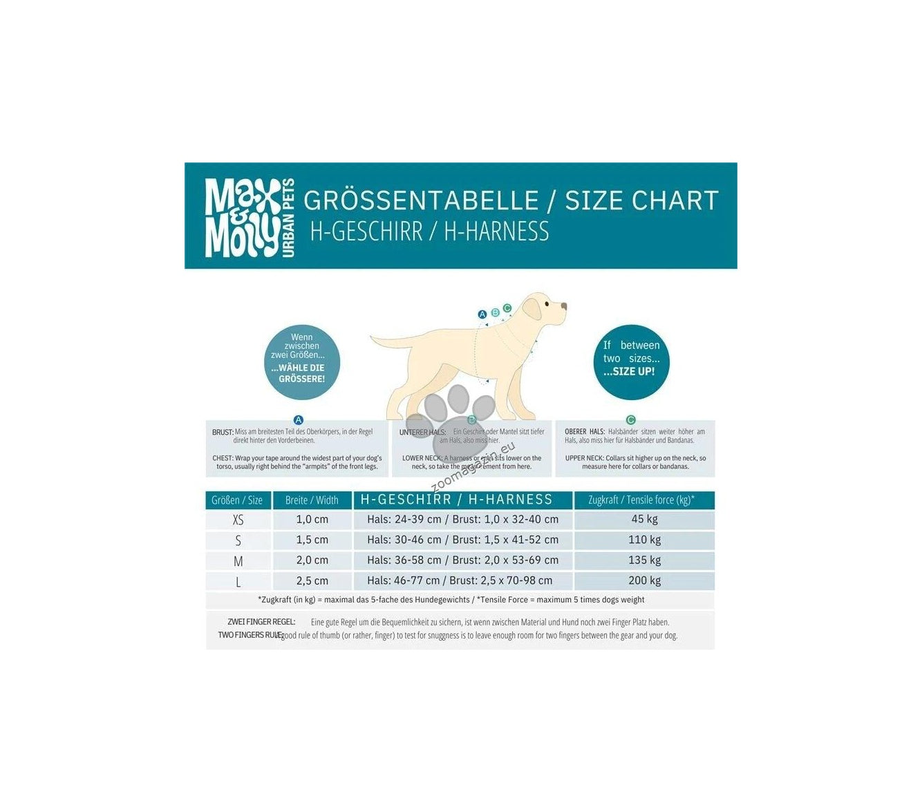 Двуслойният дизайн, съставен от неопрен и полиестер, гарантира, че този нашийник е едновременно здрав и удобен за носене. Може да се съчетае с повод от Max & Molly.