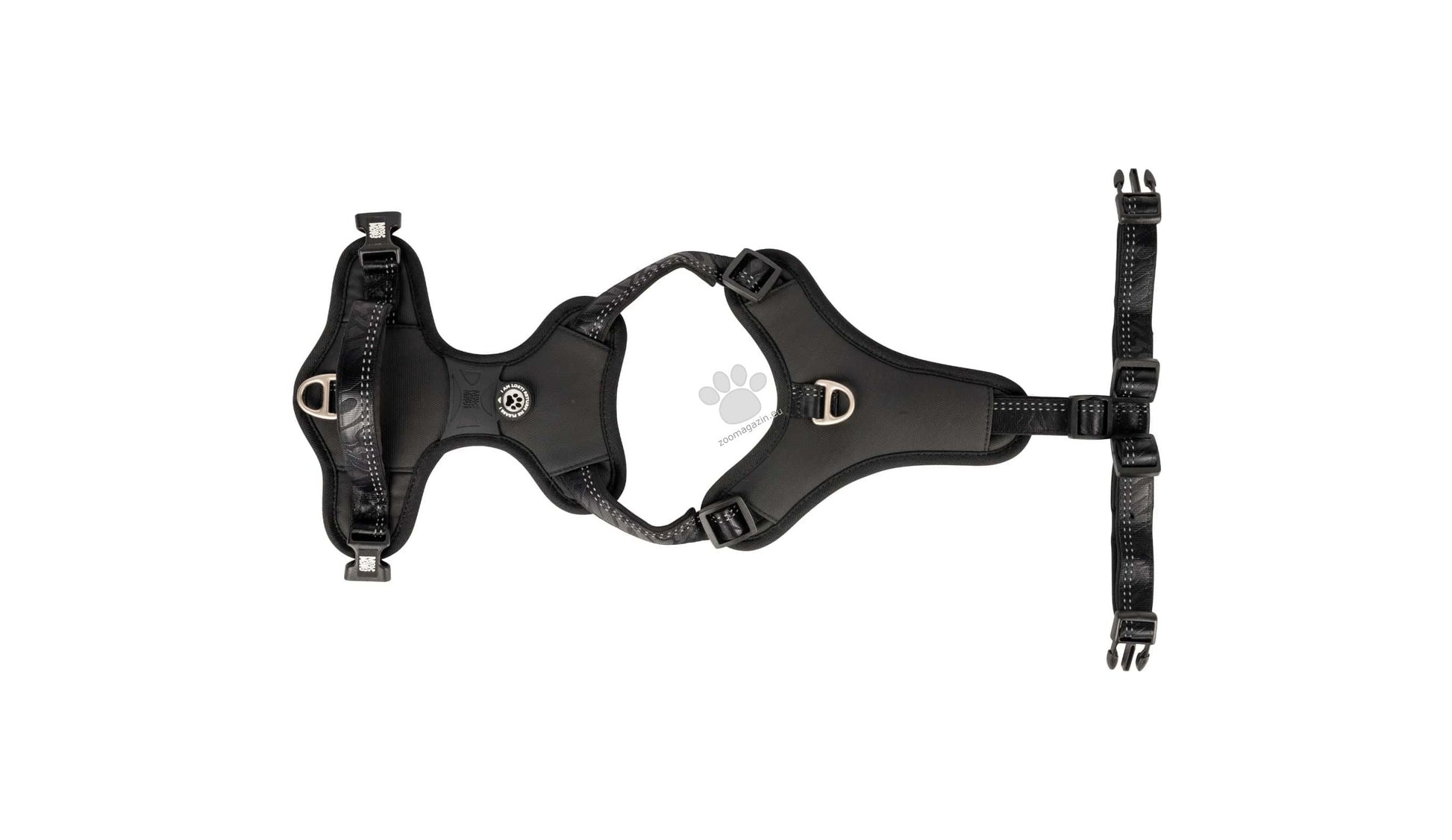 Голямата подплата на гърдите и гърба осигурява идеално разпределение на натиска и идеално съответства на кучешката анатомия. Това гарантира по-добър контрол, допълнително подсилен от подплатената дръжка на гърба. Позволява бърза намеса, когато вашият космат приятел реши да преследва собственото си приключение.