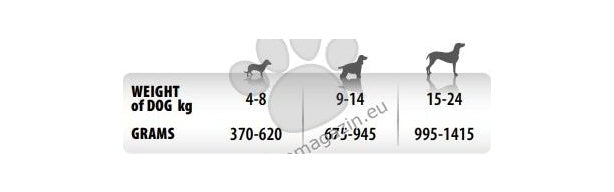 Инструкции за употреба: Дневната дажба може да бъде разделена на две хранения. Адаптирайте количеството според размера, активността и начина на живот на животното. Да се сервира на стайна температура. Уверете се, че винаги има на разположение прясна и чиста вода. Когато този продукт заменя друг е препоръчително да се въведе постепенно в продължение на поне 1 седмица.