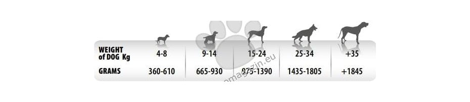 Инструкции за употреба: Дневната дажба може да бъде разделена на две хранения. Адаптирайте количеството според размера, активността и начина на живот на животното. Да се сервира на стайна температура. Уверете се, че винаги има на разположение прясна и чиста вода. Когато този продукт заменя друг е препоръчително да се въведе постепенно в продължение на поне 1 седмица.