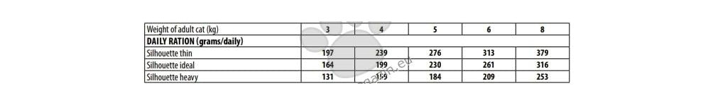 Инструкции за употреба: Дневната дажба може да бъде разделена на две хранения. Адаптирайте количеството според размера, активността и начина на живот на животното. Да се сервира на стайна температура. Уверете се, че винаги има на разположение прясна и чиста вода. Когато този продукт заменя друг е препоръчително да се въведе постепенно в продължение на поне 1 седмица.