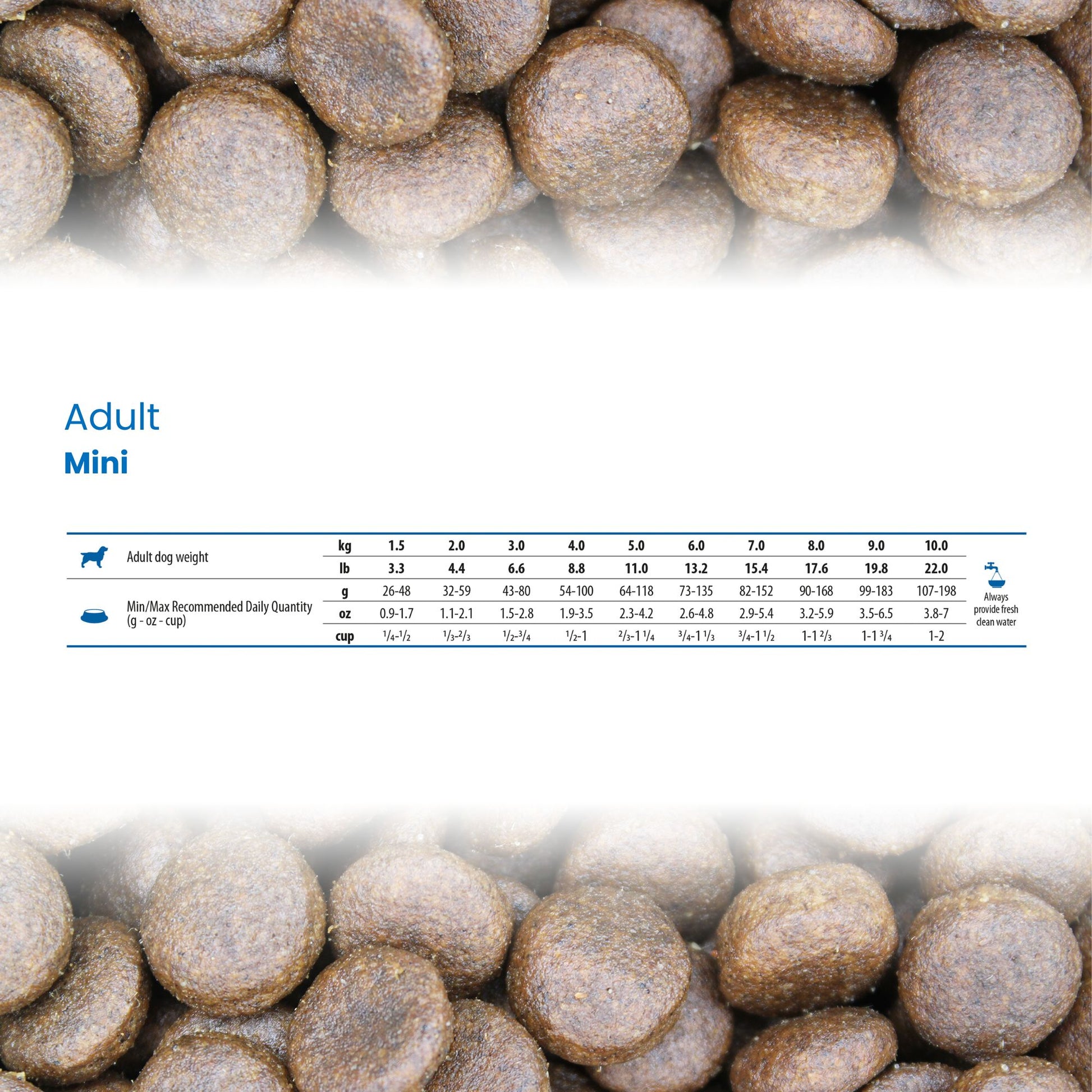 Аналитичен състав: Суров протеин 24.00%; Сурови мазнини 12.00%; Сурови влакнини 2.90%; Влага 9.00%; Сурова пепел 7.30%; Калций 0.90%; Фосфо р 0.80%; Омега‐6 1.40%; Омега‐3 1.50 DHA 0.60%; EPA 0.40%; Глюкозамин 1000 мг/кг; Хондроитин 700мг/кг.