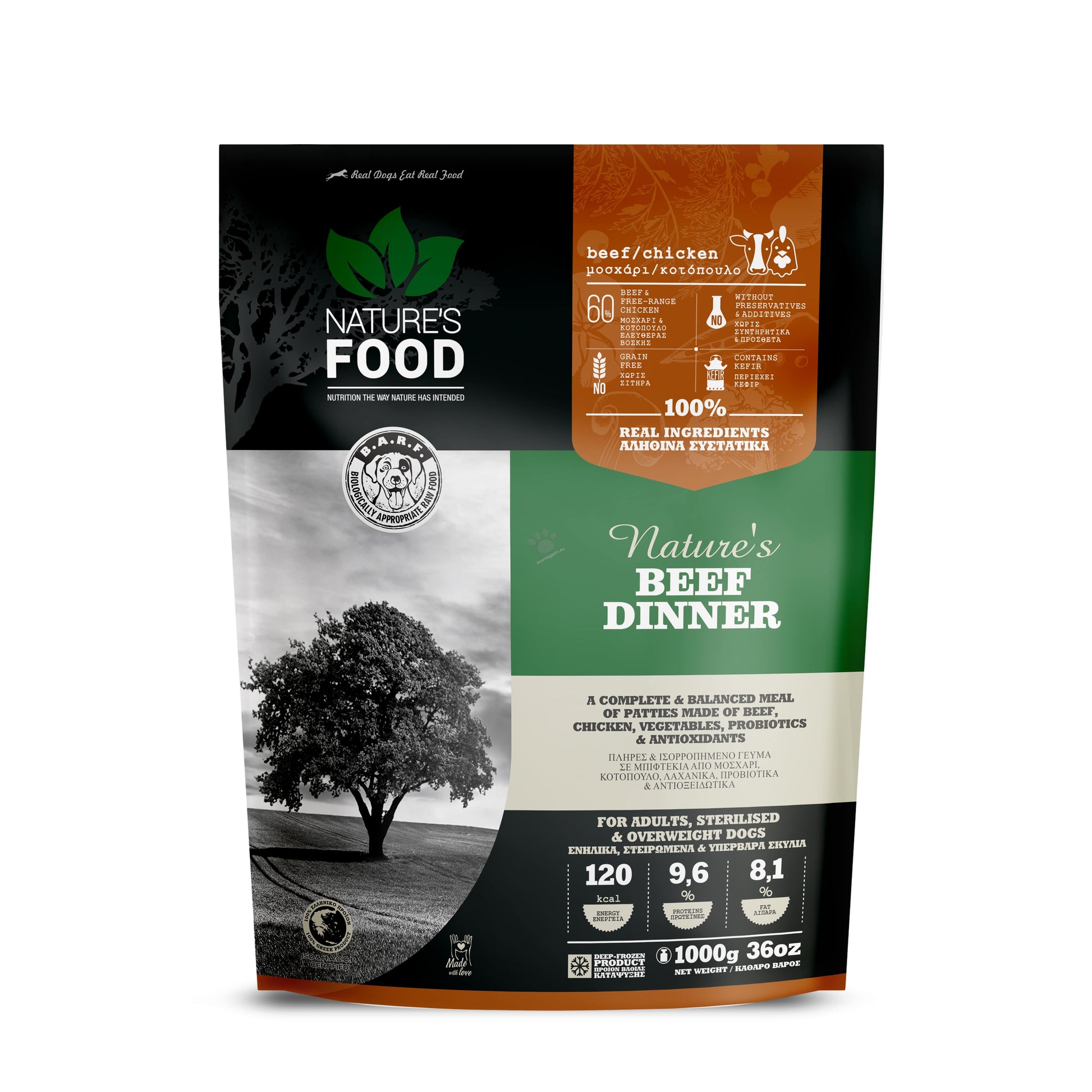 Natures Food BARF Beef Dinner Patties - хапки с телешко месо 1 кг