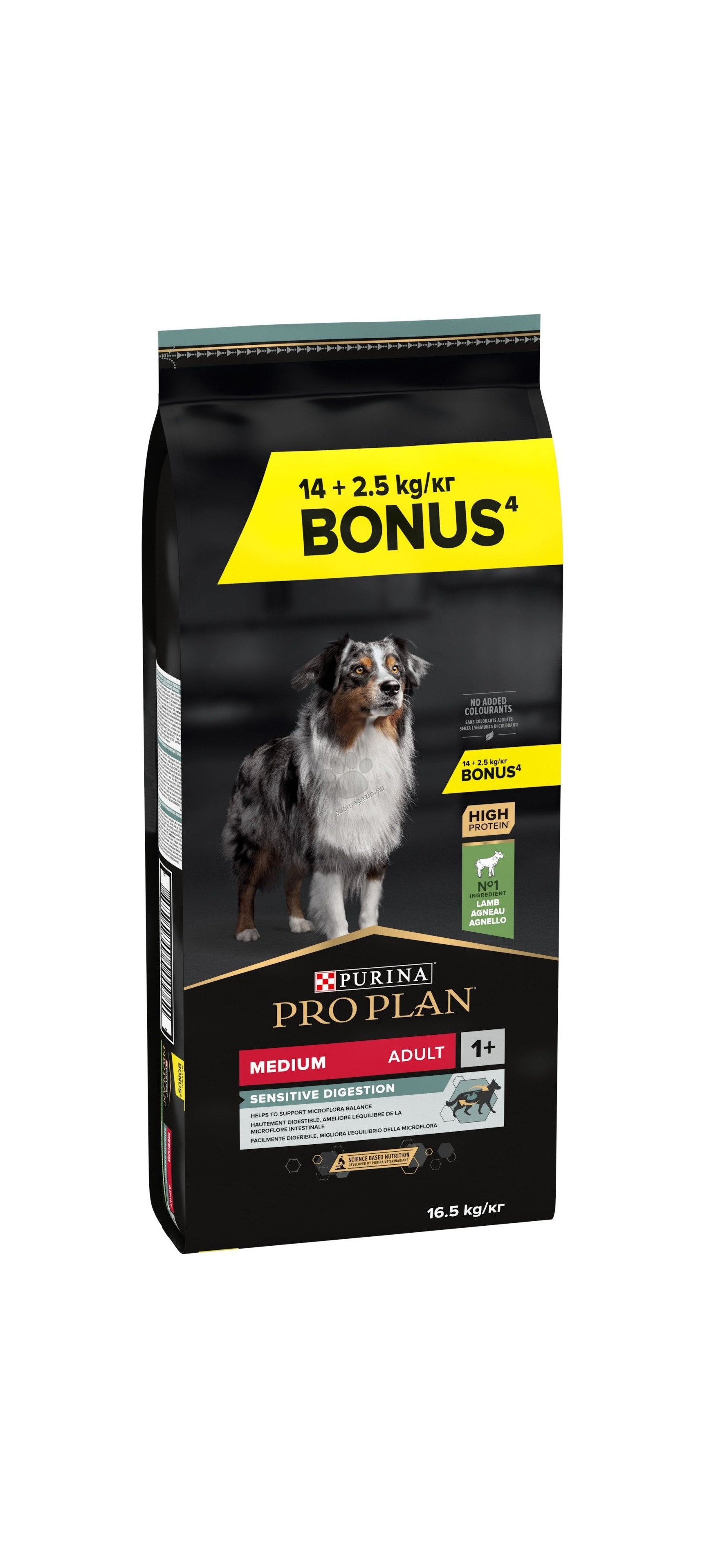 Pro Plan Adult Medium Sensitive Digestion - суха храна за кучета от средни породи с агнешко месо и ориз 14 + 2,5 кг
