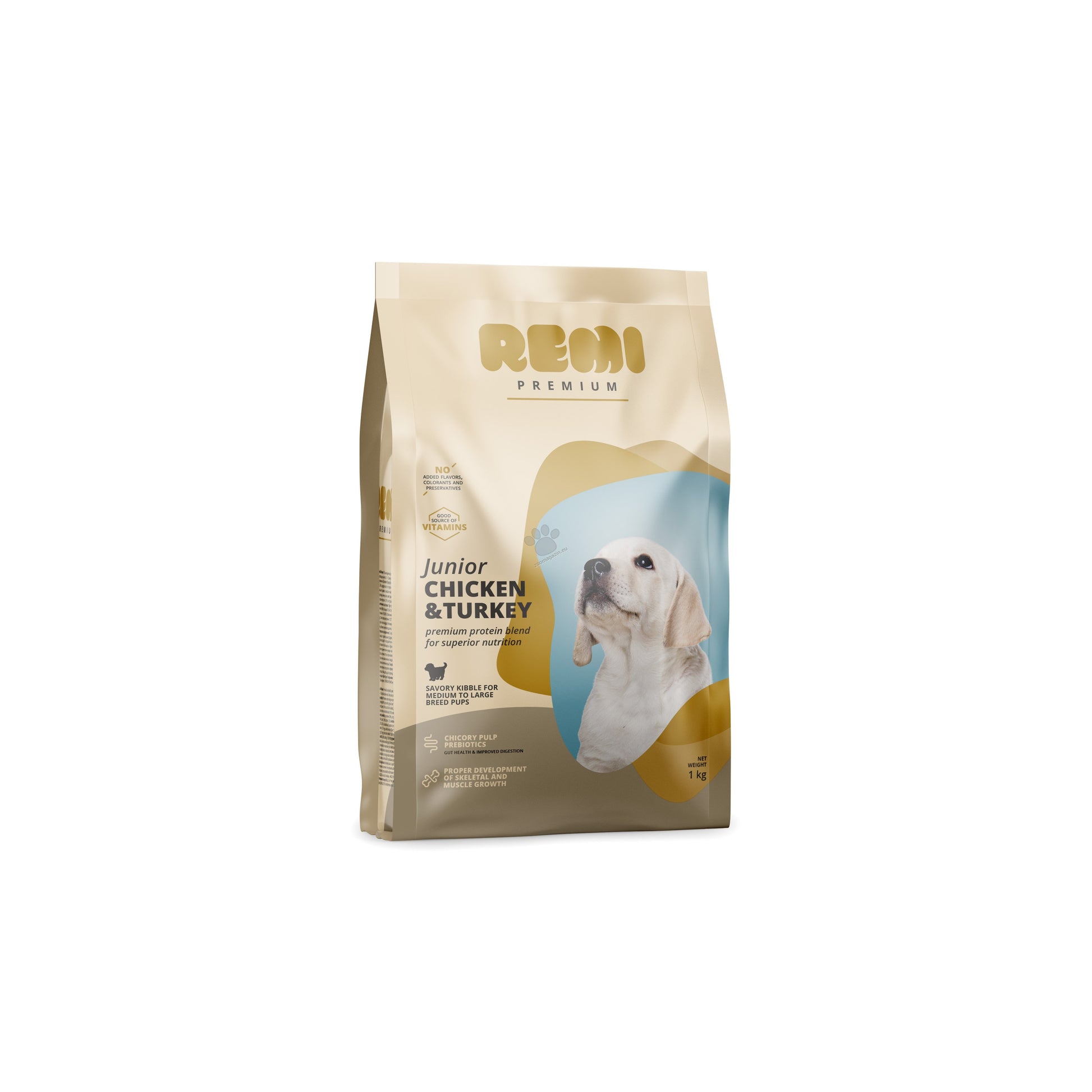 Remi Premium Junior Medium and Large Breed Chicken and Turkey - суха храна за кученца от средни породи с пилешко и пуешко месо 1 кг