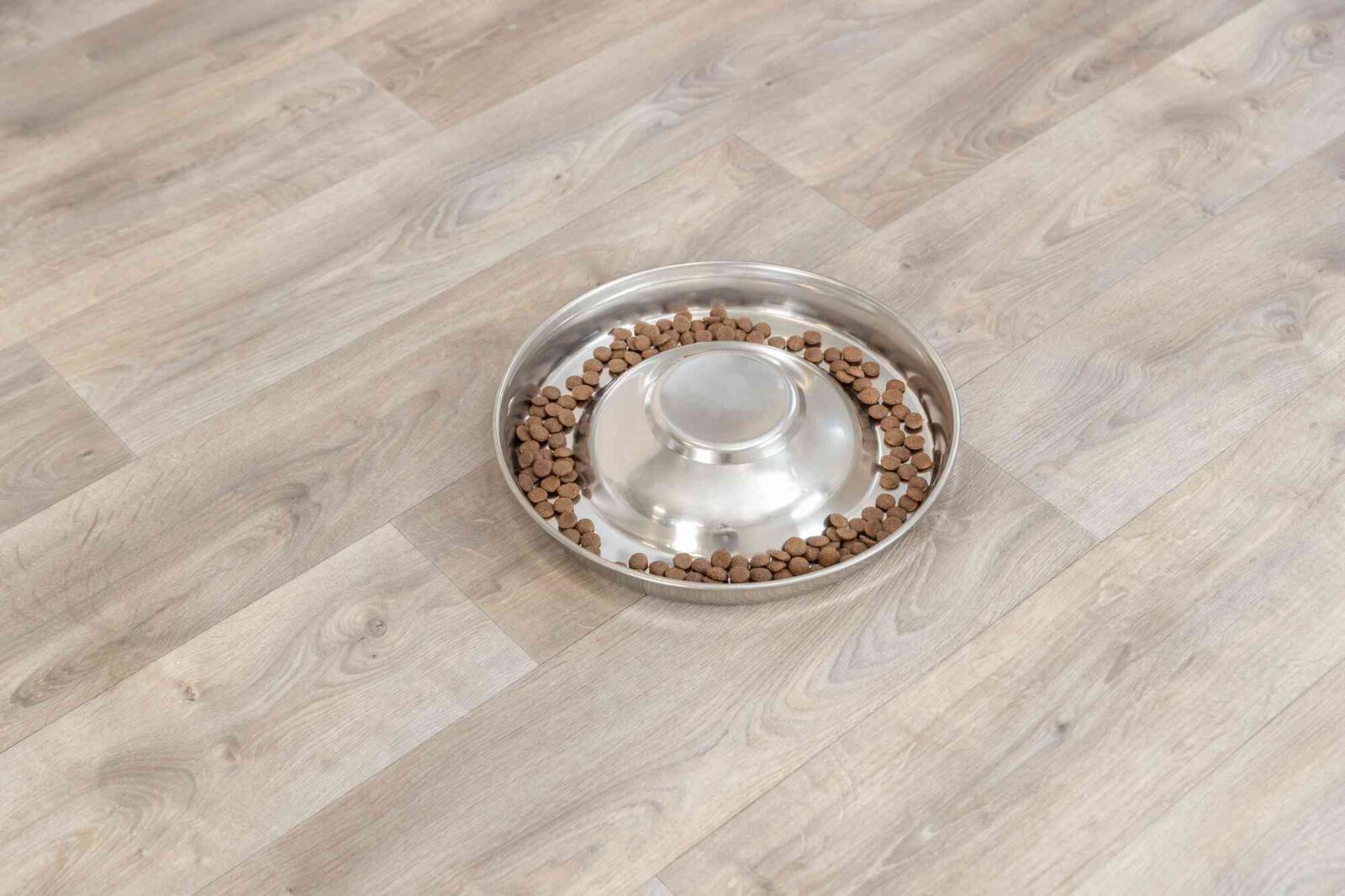 Купа от неръждаема стомана с голям диаметър, който осигурява достатъчно място за няколко кученца. Подходяща за миене и в съдомиялна машина.