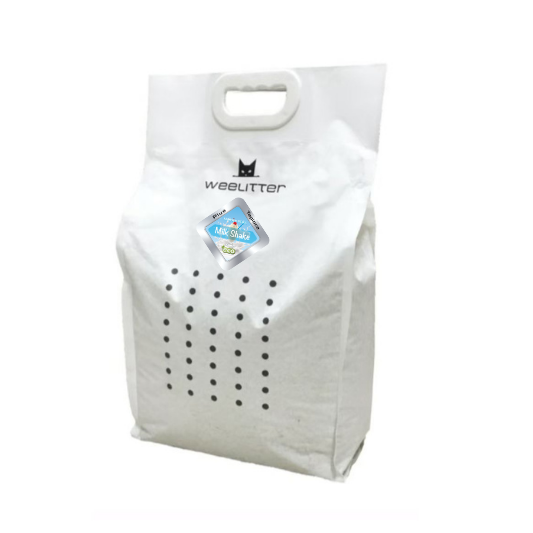 Weelitter Plus Натурална соева котешка тоалетна с аромат на млечен шейк, подсилена с тапиока за по-еластични, стегнати и чисти бучки. Попива бързо, улавя миризмите ефективно и не се разтрошава. Хипоалергенна, биоразградима и подходяща за чувствителни котки.